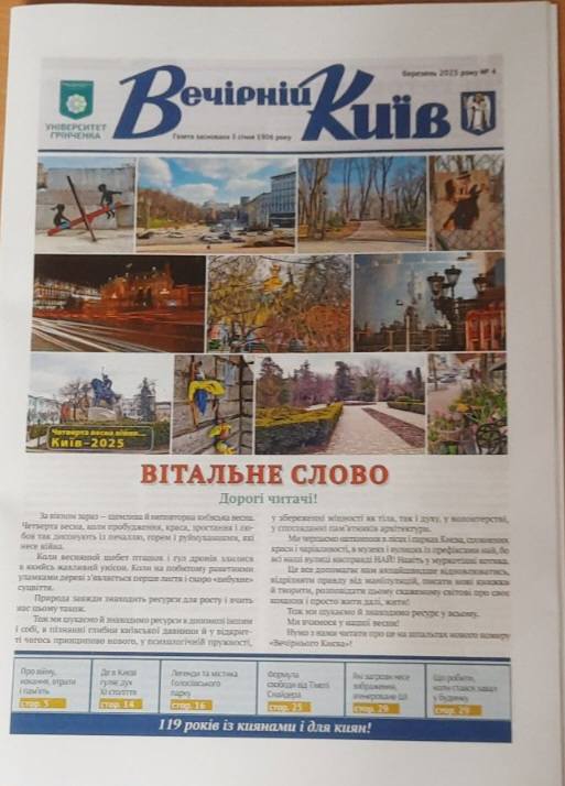 Побачив світ новий, четвертий, випуск друкованої версії газети «Вечірній Київ». Газета розповідає про найактуальніші події та тенденції, якими живе столиця навесні 2025 року.