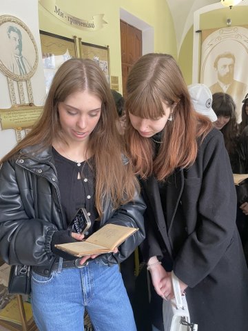 Майбутні журналісти мали нагоду поспілкуватися й послухати захопливу історію життя патрона нашого університету в представленні Лашка Михайла Васильовича, старшого наукового співробітника музею. Під супроводом пана Михайла студенти “пройшли” шлях від народження до смерті Бориса Дмитровича, зупиняючись на ключових моментах, звертаючи увагу на деталі й артефакти. Наприклад, потримали в руках раритетні видання, зокрема працю «Національна та інтернаціональна ідея» 1906 року, радянське перевидання повісті «Під тихими вербами».