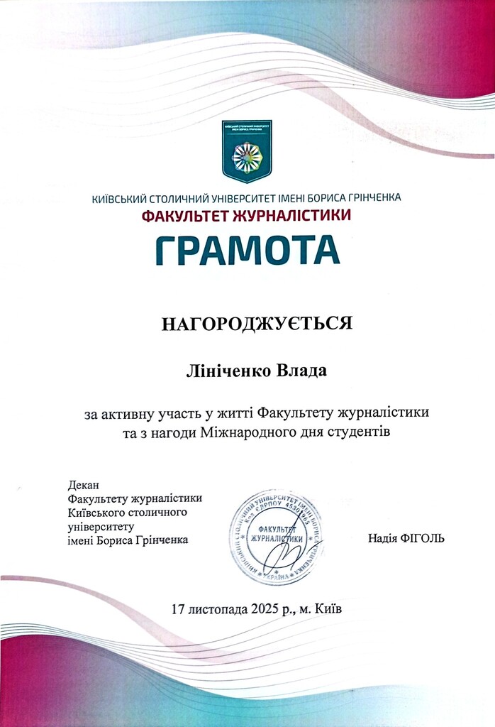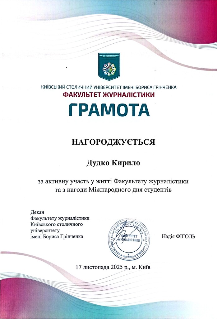 17 листопада 2025 року до Міжнародного дня студента відбулася церемонія нагородження здобувачів Факультету журналістики.