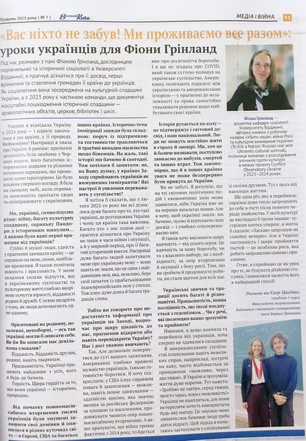 Нині над паперовим «Вечірнім Києвом» працює потужна команда журналістів Київського столичного університету імені Бориса Грінченка. Серед редакторів рубрики є й представниця кафедри міжнародної журналістики — кандидат філологічних наук, доцент Олена Даниліна, яка опікується літературною сторінкою видання та практикою студентів. Газета стала потужним майданчиком для практики студентів — майбутніх журналістів, які під керівництвом наставників стають справжніми майстрами слова. У сьомому випуску відбувся дебют першокурсника ОП «Міжнародна журналістика» Єгора Цигічка, який поспілкувався з доценткою кафедри соціології Університету Вірджинії Фіоною Ґрінланд і підготував до друку інтерв’ю.