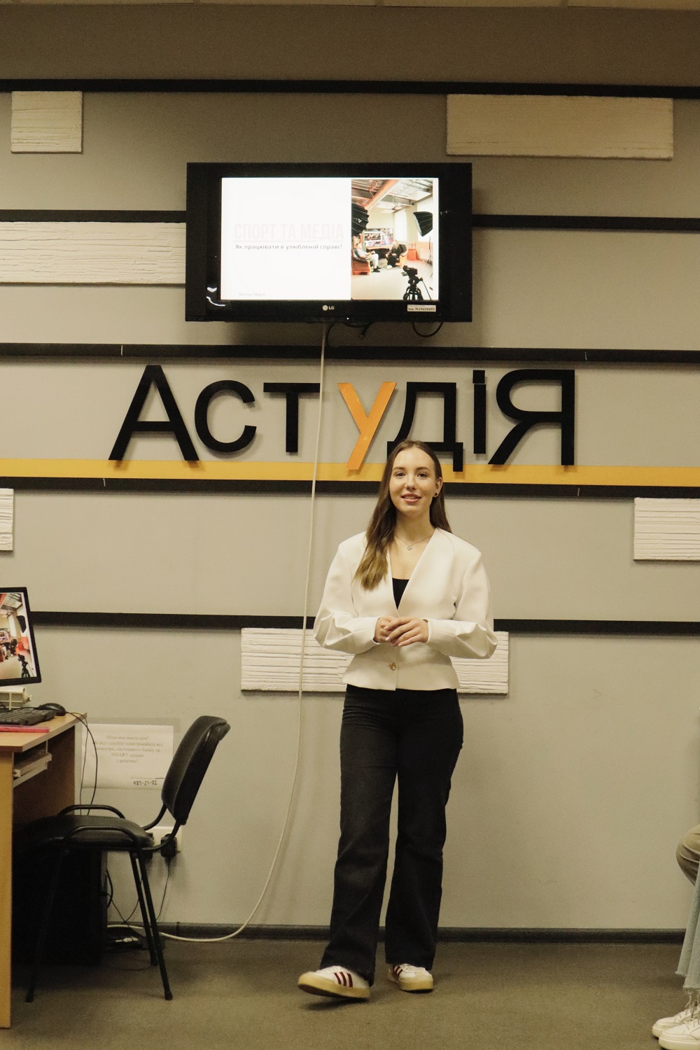 Марія Магнус, студентка І курсу ОП "Міжнародна журналістика", яка поділилася власним досвідом роботи в Sportmarket.review як інтерв'юер та журналіст у доповіді "Спорт та медіа";