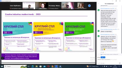 25 травня 2023 року в межах ІІ Міжнародної науково-практичної онлайн-конференції студентів, аспірантів, молодих учених та практиків «КРЕАТИВНІ ІНДУСТРІЇ: СУЧАСНІ ТРЕНДИ» відбувся онлайновий круглий стіл «Рекламний та PR-креатив у промоції сучасних брендів» як інтелектуальний обмін ідеями та практиками, у якому взяли участь науково-педагогічні працівники кафедри реклами та зв’язків з громадськістю, представники рекламних і PR-агенцій, громадських організацій, здобувачі освіти та випускники освітньої програми «Реклама і зв’язки з громадськістю». Модерував онлайн-зустріч Леонід Новохатько, завідувач кафедри реклами та зв’язків з громадськістю Факультету журналістики Київського університету імені Бориса Грінченка, доктор історичних наук, професор, заслужений діяч науки і техніки України.