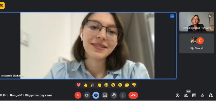 Після 2 курсу бакалаврату, Анастасія взяла участь у щорічній Міжнародній програмі з лідерства служіння, яка вже понад 10 років проводиться у співпраці з міжнародною організацією “Co-Serve International”. В основі ідеї лідерства служіння лежить цінність людини та взаємовідносин між людьми, позитивний вплив на оточуючих для досягнення спільних цілей.