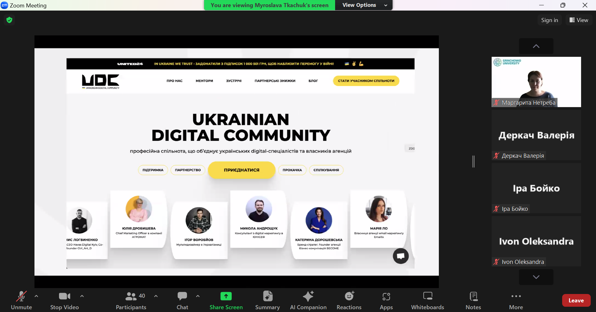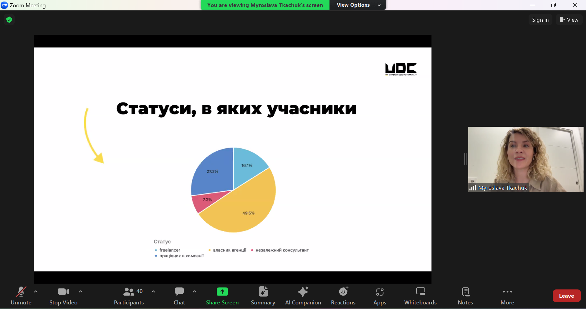 - Кейс Ukrainian Digital Community. Мирослава поділилася власним досвідом створення та управління Ukrainian Digital Community. Вона розповіла про виклики, з якими стикалася, та успіхи, яких вдалося досягти завдяки правильному підходу до управління спільнотою.