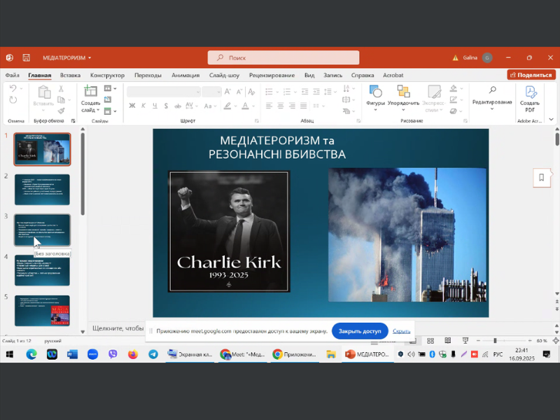 Темою зустрічі став один із найгостріших викликів сучасних медіа – медіатероризм та його прояви у висвітленні резонансних убивств. Лекторка окреслила основні підходи до аналізу таких явищ, показала приклади з українського та міжнародного медіапростору, а також наголосила на ролі журналістів і фахівців із комунікацій у формуванні суспільної безпеки та довіри.