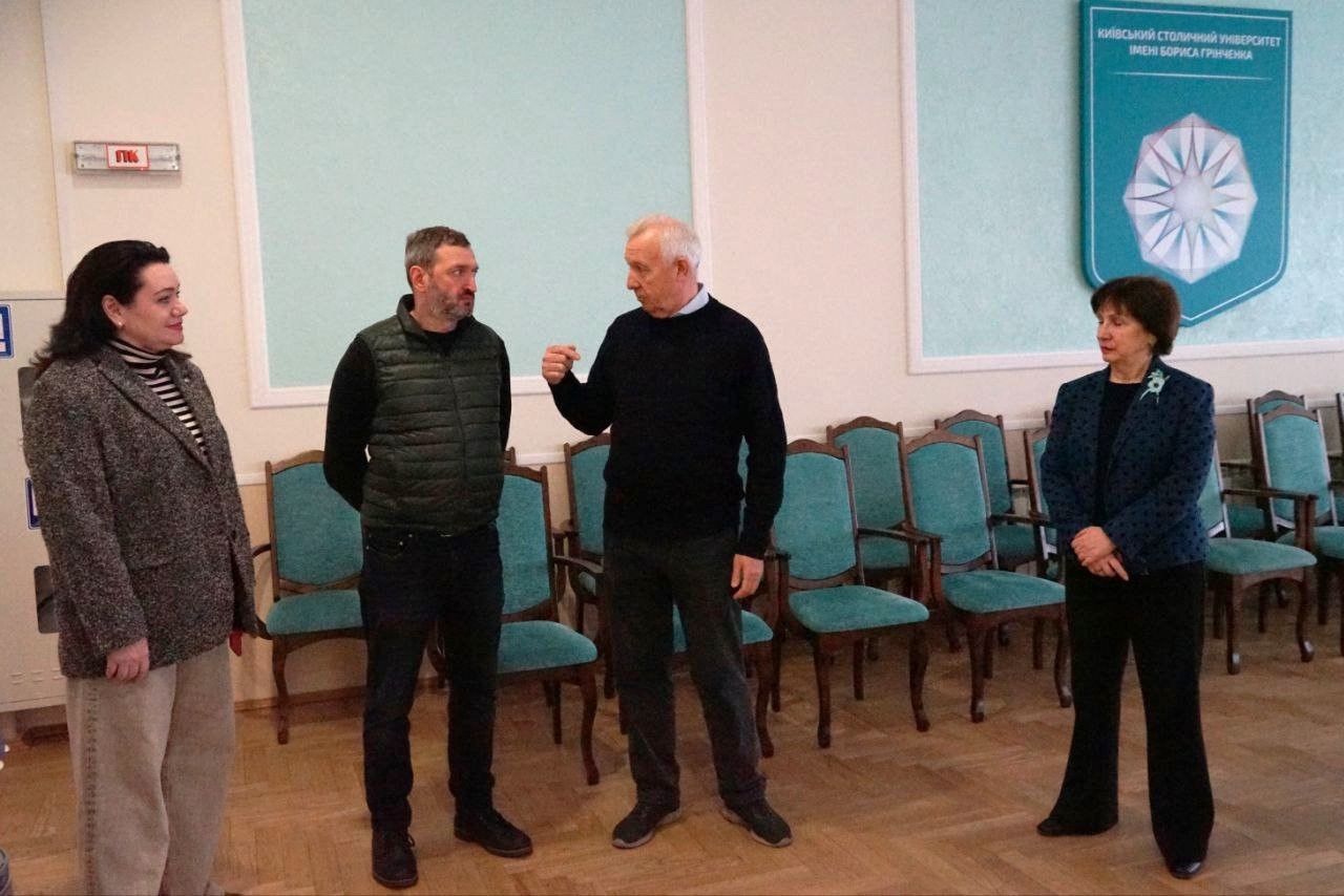 З метою обговорення практичних кроків щодо реалізації положень меморандуму 14 березня 2024 року директор Департаменту культури Сергій Анжияк відвідав Університет Грінченка. Декан Факультету журналістики Галина Горбенко та завідувач кафедри реклами та зв’язків з громадськістю Леонід Новохатько ознайомили гостя з навчальними майстернями, лабораторіями та іншими локаціями Університету, які можуть бути задіяні у проведенні спільних заходів та забезпеченні виконання творчих завдань, передбачених Меморандумом.