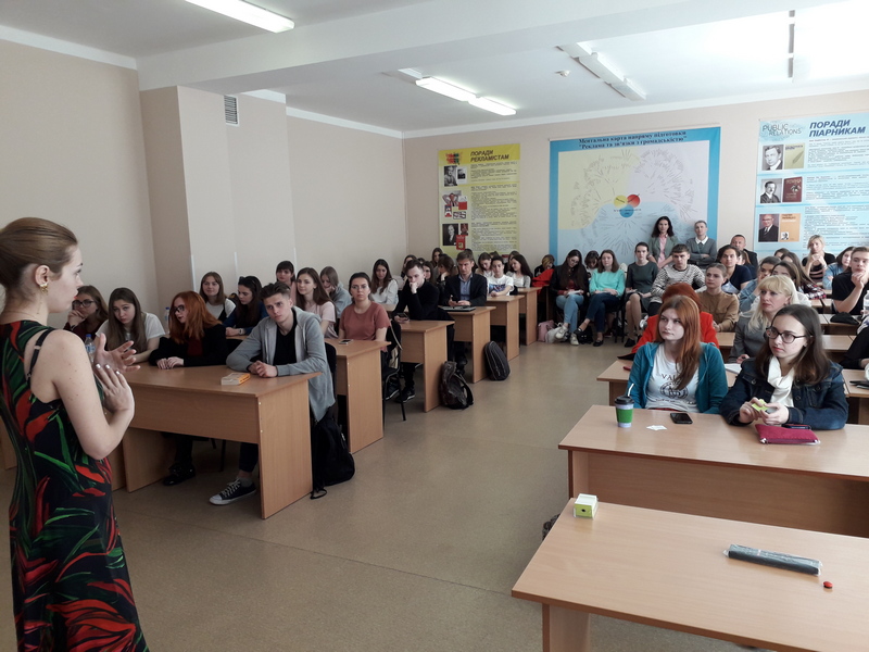 Анна Сухаревська, засновник IQ LUXURY GROUP, поділилися своїм цікавим досвідом промоції відомого психолога Михайла Лабковського, розповіла про рекламне співробництво з Ярославом Самойловим, Вікторією Бонею, Анною Сєдоковою, закупівлю реклами у зірок шоу-бізнесу, навела конкретні, деталізовані приклади роботи з промо-кодами. Доповіді уважно слухали не лише студенти, але й співробітники Інституту журналістики: викладачі кафедри реклами та зв’язків з громадськістю І.Ю.Афанасьєв, К.М.Семенюк, О.І.Стадніченко, М.А.Тебешевська, О.М.Яремчук, викладачі кафедри журналістики та нових медіа О.В.Одаренко, О.А.Хамедова, викладачі кафедри бібліотекознавства та інформології В.Є.Сошинська, Н.М.Терещенко; деякі інші; ще одна гостя заходу — Марія Літвін,івент-менеджер, провідний фахівець із зв’язків з громадськістю Українського культурного фонду. Після того, як студенти вирушили на пари, діалог продовжився, можна сказати, на рівні “P2P” — Professional to Professional, професіонал для професіонала. Запитання й відповіді, обмін практичним досвідом і теоретичними знаннями, про ефективні в українських реаліях методи аналізу цільової аудиторії, вибір каналів комкунікації, багато інших тем. Невимушене, неформальне, при цьому змістовне спілкування в широкому спільному колі й групами по 3-7 осіб тривало ще понад годину. Що й не дивно: наполегливі рекламісти й піарники навчаються протягом усього свого життя!