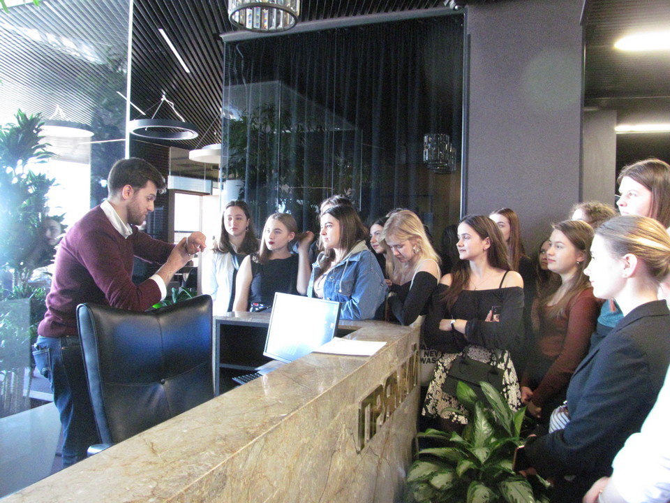 Візуальний складник забезпечують дизайнери, котрі зосереджено вибудовують на моніторах різні схеми, графіки. Звукорежисер відповідає за те, аби все те, що відбувається на екрані було якісно озвучено. Нам вдалося побачити запис прямого ефіру, а відтак поспостерігати за роботою ведучих наживо. Опісля Ярослав наголосив на деяких складнощах професії, зокрема й на тому, що досить важко працювати при сильному світлі прожекторів. Після завершення екскурсії та пізнавальних фактів усім надали змогу зробити фото.