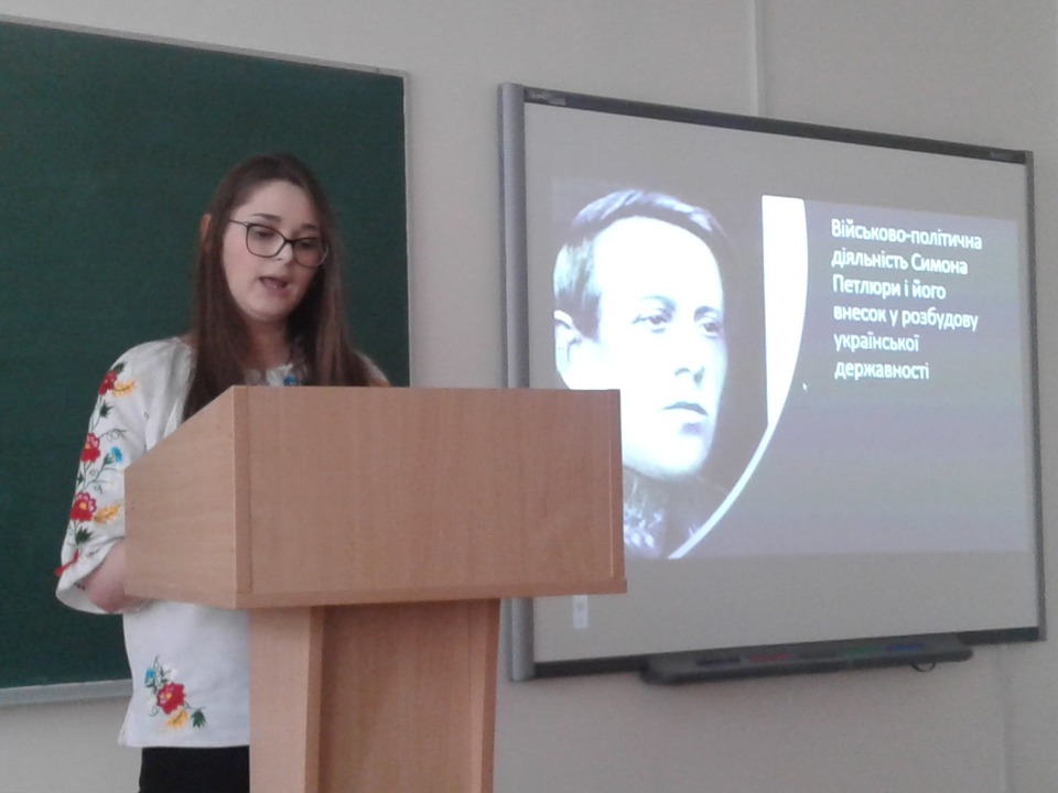 Катерина Сусленко ознайомила присутніх із основними етапами біографії Симона Петлюри. Про військово-політичну діяльність Головного отамана армії УНР і його внесок у розбудову української державності розповіла Дар’я Татарчук.
