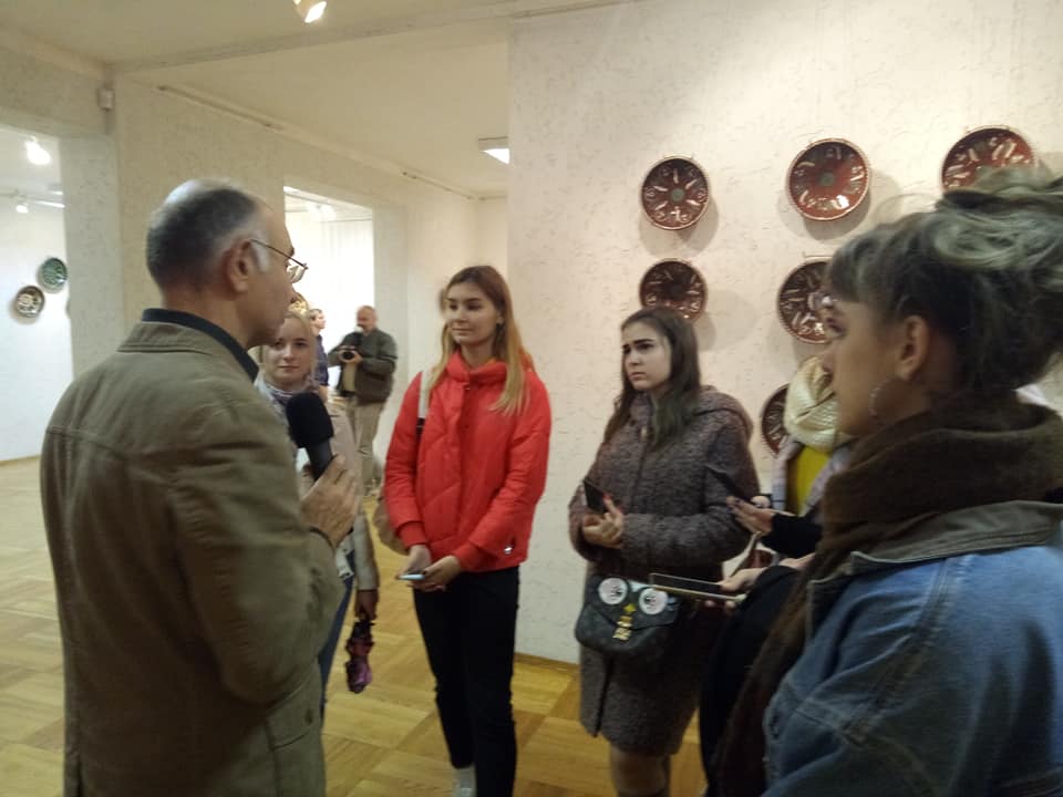Студенти спеціальності «Журналістика» Університету Грінченка разом зі старшим викладачем кафедри Валерієм Ясиновським побували у Національній спілці майстрів народного мистецтва України на відкритті експозиції «Чигиринський прорив» ветерана АТО, славетного митця-кераміста Євгена Поступайла.