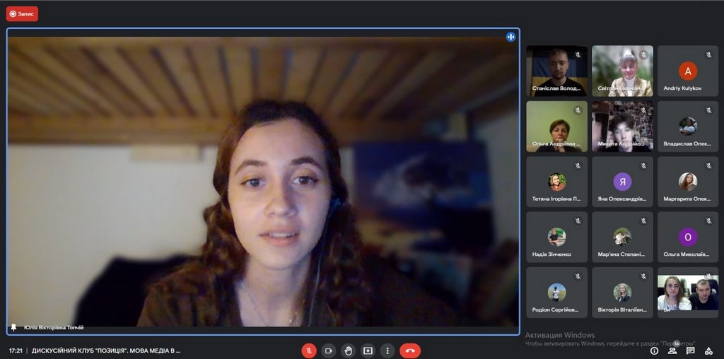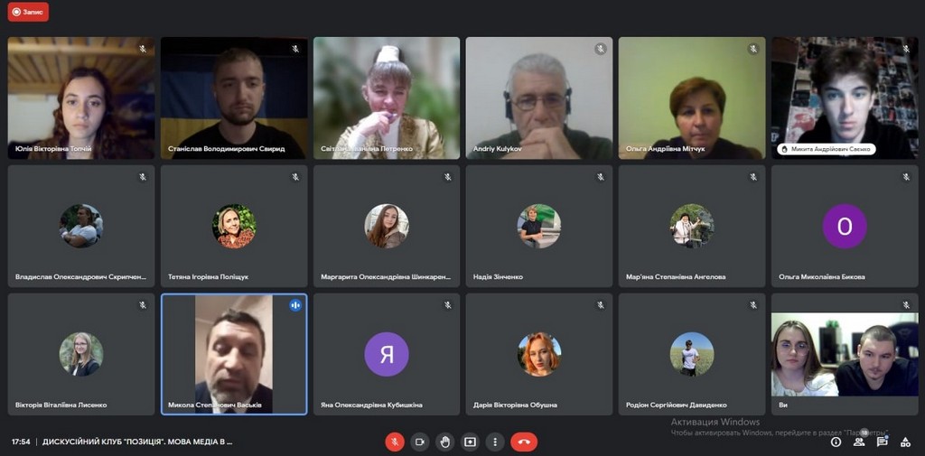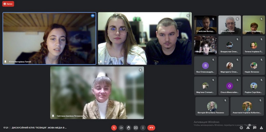 9 листопада, відбулося друге відкрите онлайн-засідання ДИСКУСІЙНОГО КЛУБУ “ПОЗИЦІЯ” факультету журналістики на тему “Мова медіа в умовах російсько-української війни. Чи витримують професійні стандарти та журналістська етика?” Дискусію підготували студенти 4 курсу під керівництвом доктора філософії, доцента кафедри журналістики та нових медіа Світлани Петренко.