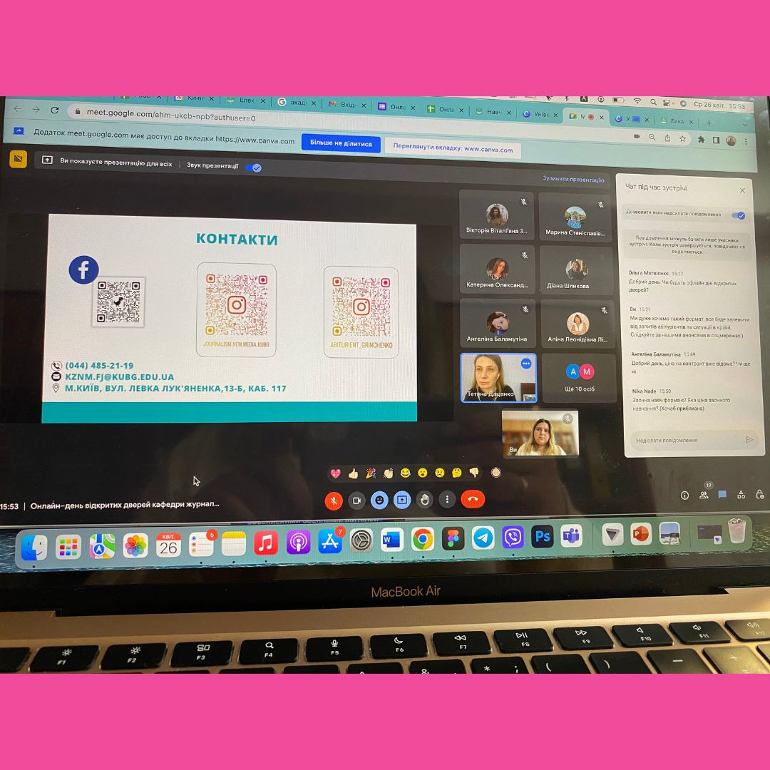 26 квітня 2023 року відбувся Онлайн–день відкритих дверей на кафедрі журналістики та нових медіа.