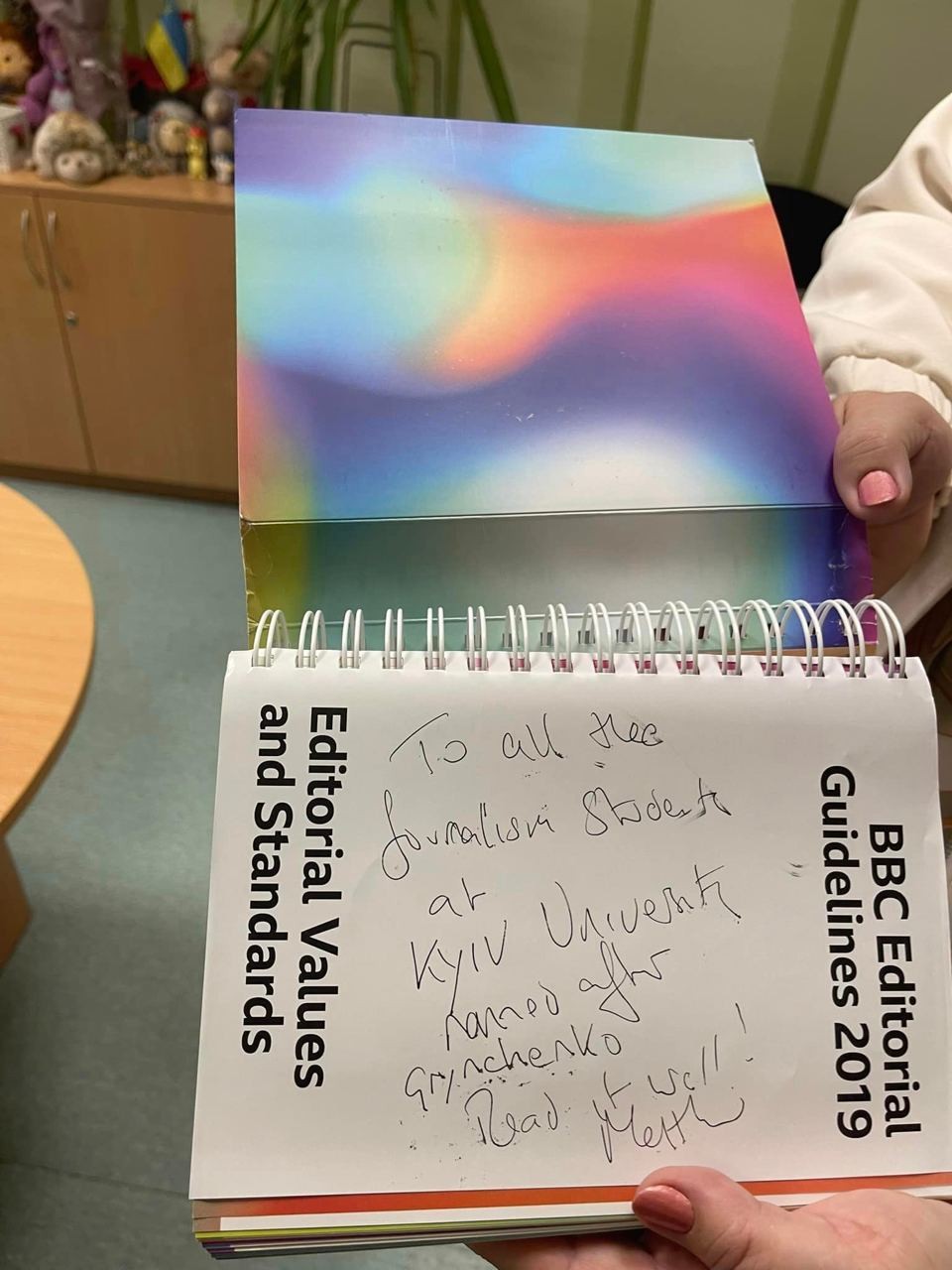 Хтось назвав ці принципи і настанови - клятвою Гіппократа у світі медіа. Топменеджмент BBC, а точніше Метью Елтрингем (Senior Advisor Editorial Policy), презентував ці стандарти нашим студентам-журналістам під час навчального візиту Вʼячеславовича Козака до цієї всесвітньовідомої медіакорпорації.