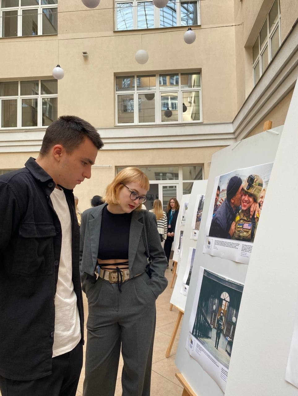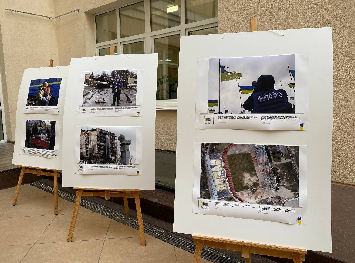 У внутрішньому університетському дворику голова Національної спілки журналістів України (НСЖУ) Сергій Томіленко презентував міжнародну фотовиставку «Ukraine Journalists in WAR zones». Експонатами стали роботи фотокореспондента Associated Press Єфрема Лукацького, воєнкора Апостроф TV Михайла Шаркова, фотожурналіста Яна Доброносова та ін. Авторів світлин відзначили спеціальними шевронами, які розробила Кароліна Муховікова. Крім цього, був показаний прапор воєнних кореспондентів із гаслом «Журналісти важливі».