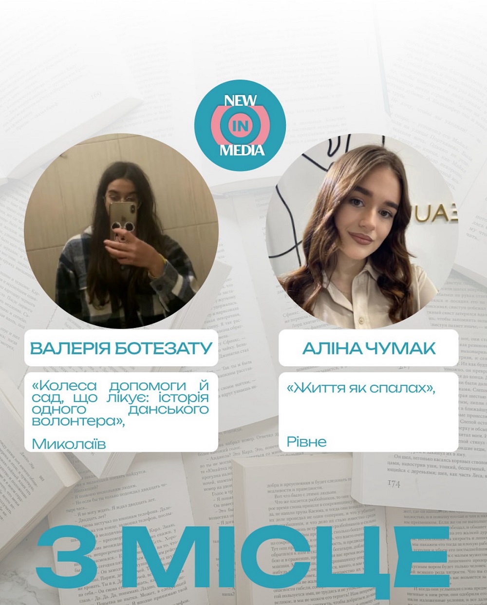 19 квітня 2025 року на Факультеті журналістики відбулася Церемонія нагородження переможців конкурсу журналістської творчості для старшокласників «Нові в медіа» в онлайн форматі. Конкурс, який кафедра журналістики та нових медіа проводить вже вдев'яте.Талановиті учасники з усієї країни надіслали понад 65 робіт. Представники з Миколаєва, Сум, Харкова, Полтави, Луцька, Краматорська й інших міст, містечок та сіл продемонстрували творчі доробки з висвітлення актуальної тематики у текстовому, відео та аудіоформатах. Цьогоріч було започатковано нову номінацію "Журналістика в соціальних мережах". До складу журі були запрошені Наталія Дудка (випускниця Факультету журналістики), Андрій Борець (доцент кафедри журналістики та нових медіа), Костянтин Бакаєвич (завідувач навчальної лабораторії радіомовлення), Мар'яна Ангелова (завідувачка навчально-виробничої майстерні тележурналістики) та студентське журі, яке очолила Ольга Шок (студентка 4 курсу, кореспондент телеканалу "Київ24.news"). Складно було обирати найкращі роботи, адже, за словами експертів, дев'ятий сезон конкурсу "Нові в медіа" здивував самостійністю вибору тем та чіткістю актуальних для України повідомлень.