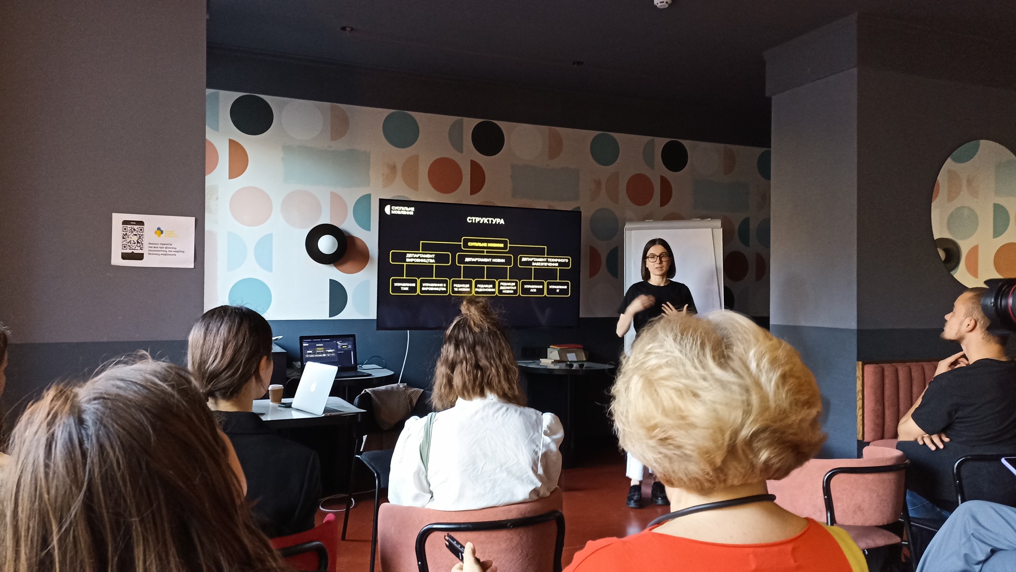 У межах першого навчального курсу «Суспільне мовлення: теорія та практика» дисципліни «Суспільне мовлення в сучасному медіапросторі» під час практичного заняття продюсерка виконавчої дирекції інформаційного мовлення Христина ГАВРИЛЮК розповіла про діджитал-складник інформаційного мовлення. Вона ознайомила зі структурою інформаційної мережі, редакційними засадами інформаційного мовлення та світовою роллю Суспільного в інформуванні про події в Україні.